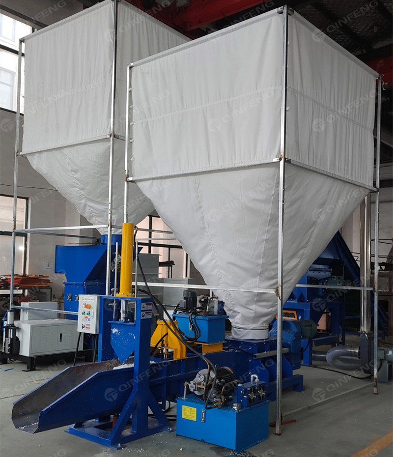 秦風機械正在制造泡沫塑料壓實機來解決這個問題。它可以減小EPS材料的尺寸,壓縮比可達1:30-1:50。成品為EPS塊,密度可達300kg/m3。客戶可以輕松地將 EPS 材料運送至另一個回收處理單元。