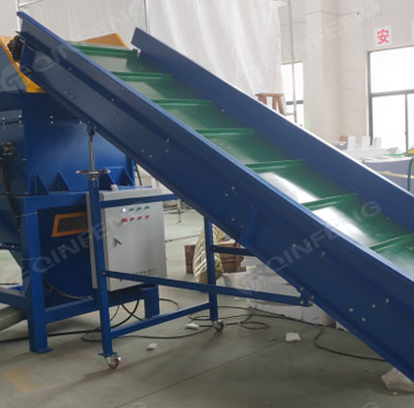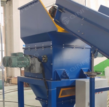 4軸破碎刀片工作時,兩個不同旋轉方向的平行刀片軸開始旋轉,形成波浪向下夾持,使物料不斷向下運動,經過切割刀片后,破碎成更小的塊狀物質 . 然后風機輸送將物料吹入料倉,儲存一定量,然后物料在熱熔機中熔化。